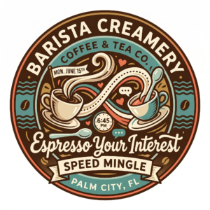 We’ve chosen the intimate and aromatic ambiance of Barista Creamery Coffee & Tea Co.—Palm City’s favorite establishment for artisanal beverages—to host our event. The environment is structured to minimize noise and distractions, promoting authentic, direct engagement. Our system allows a precise amount of time for you to assess compatibility and make a memorable first impression.